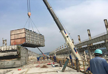 2017年9月18日福建亚洲必赢上克不锈钢有限公司冷酸炉壳吊装就位,,,标记着冷酸线装置施工最先。。。